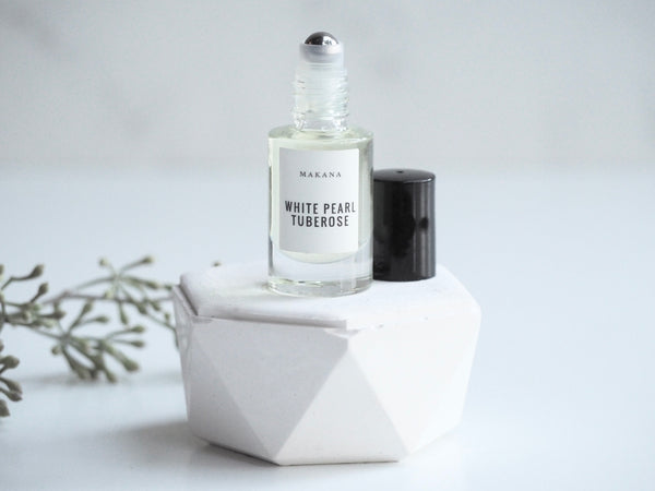 Bottled and poured by hand into roll-on glass bottles with a sleek black metal cap. Hand-labeled with our simple, modern design, this small bottle will sit beautifully on your dresser, bedside table or bathroom counter.